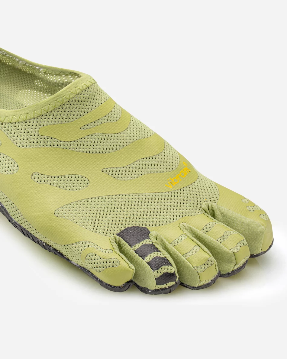Подметката Max-Feel е с обща дебелина от 5 мм, изградена от Vibram EcoStep каучук, който съдържа 30% рециклирани материали. Осигурява отлична гъвкавост, сцепление и устойчивост – без да прави компромис с чувствителността към терена. Сегментираният дизайн подпомага естественото движение на стъпалото и повишава контрола.